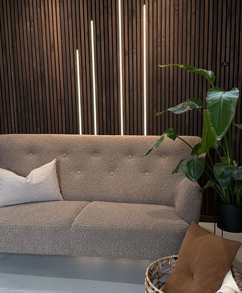 With the ability to place an LED strip between the slats of the WoodUpp Akupanel, you can customize your space and the panel to your personal taste.